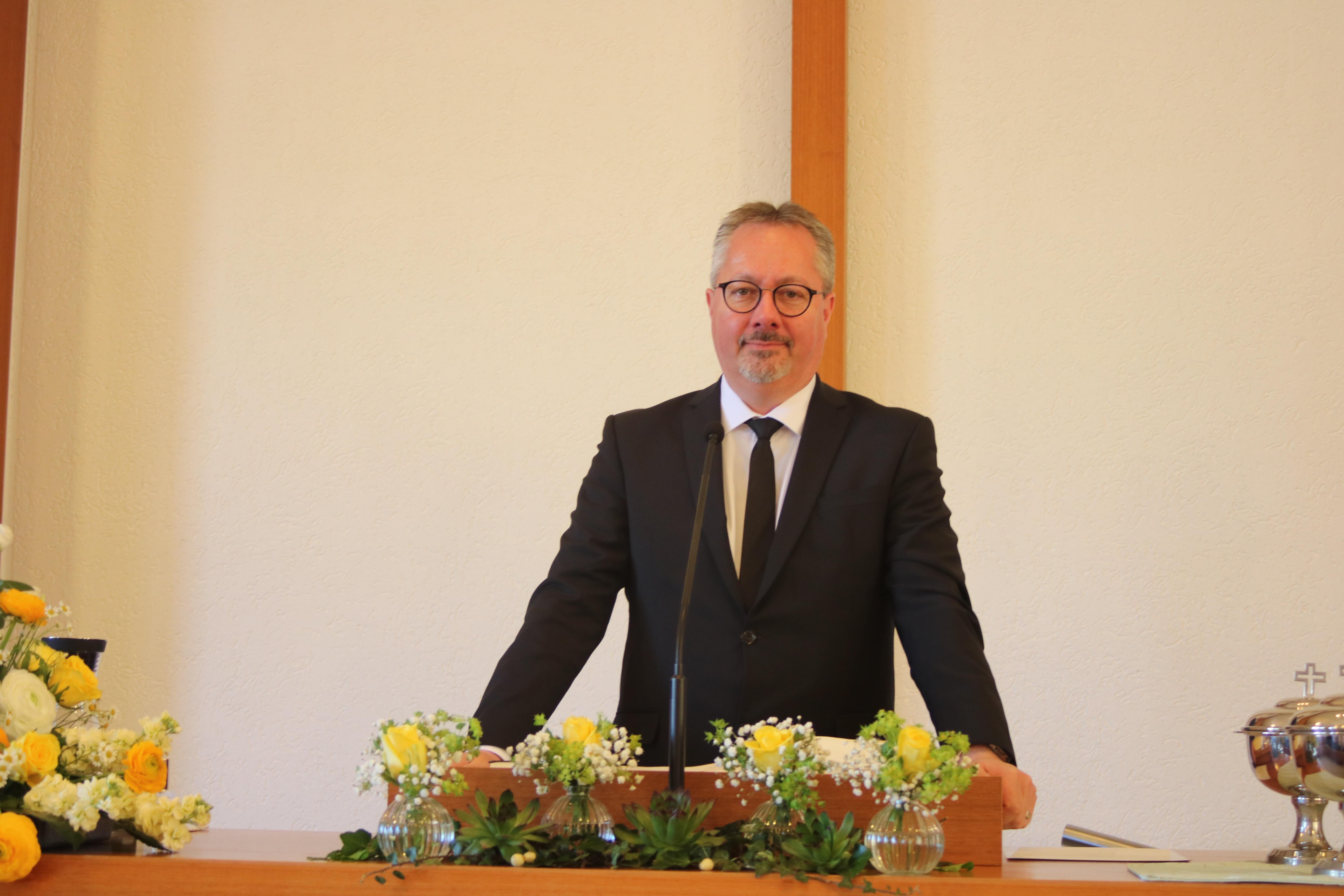 Zum Predigtbeitrag wurde Apostel Ralf Vicariesmann gebeten. In seinem Dienen ging er noch auf die Wendepunkte im Leben der Jünger Jesu ein. Als sich Jesus nach der Auferstehung in ihrem Kreis das erste Mal zeigte, begegnete er Ihnen mit den Worten „Friede sei mit euch“. Auch Maria erfuhr einen Wendepunkt am Grab Jesu, als er sie mit ihrem Namen ansprach, so Apostel Vicariesmann. Die Kraft des Auferstandenen könne auch den Gläubigen heute Ruhe im Herzen schenken und neuen Mut geben. Auch in schwierigen Situationen. Besonders im heiligen Abendmahl sei diese Kraft erlebbar.